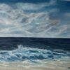 Salty Sea is a 36 X 36 X1.5 original oil-on-canvas painting bathed in layered blue and gray hues that evoke the vastness and mood of the ocean. The sky and sea merge with a bold horizon line, creating a sense of endlessness and quiet solitude. Overall, the painting feels both powerful and meditative, conveying the raw, briny presence of the sea and the calm that follows its steady, timeless motion providing the viewer a vision for meditation.